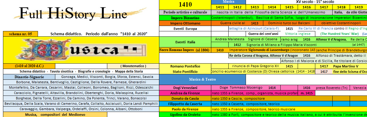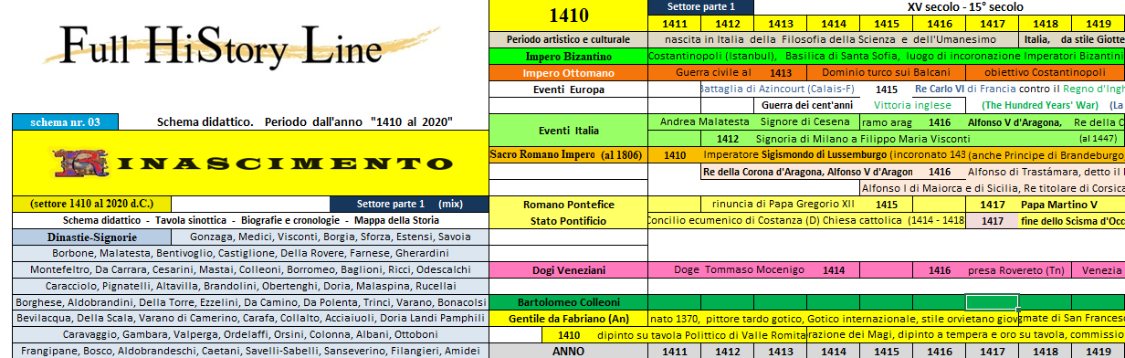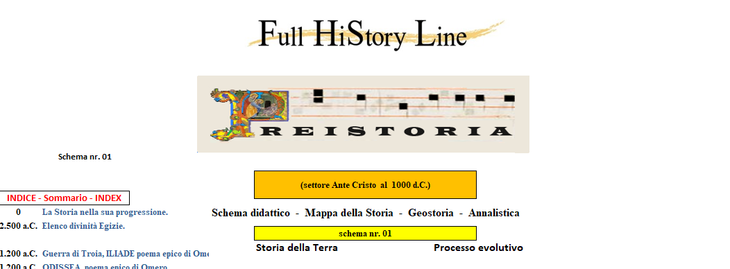 Potrete notare, consultando il nostro sito che gli schemi didattici FULL HISTORY LINE non ricalcano i “programmi classici scolastici”, ma leggono la Storia in maniera completa, globale e dettagliata con più eventi e biografie visti contemporaneamente e in maniera progressiva e parallela. Speriamo d’aver così dato un nostro personale contributo all’Arte, alla Storia e alla Cultura.